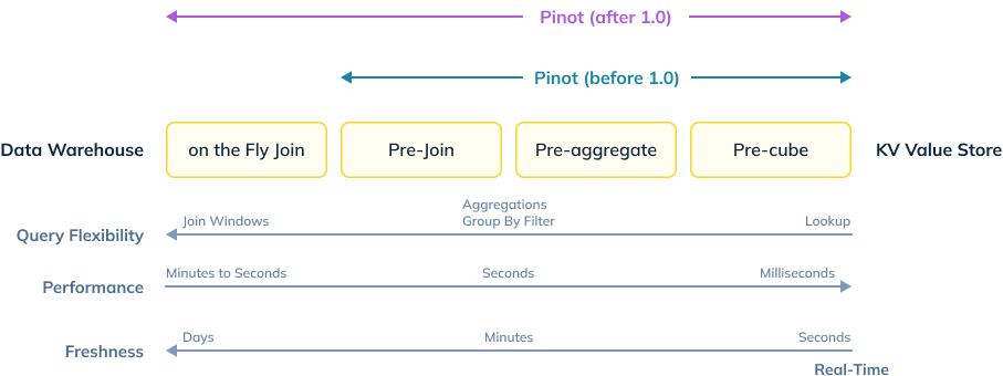Figure 9: 2-phased Pinot Journey addressing the challenges of latency, throughput, and freshness and now tackling query flexibility